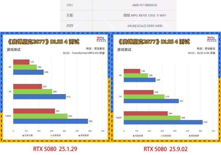 使用RTX 50系显卡的玩家应该都会发现上图《赛博朋克2077》的设置界面看起来怪怪的,虽然采用了Transformer模型,但没有DLSS 4 多帧生成的选项,这就是在游戏加入了该功能后,没有更新驱动所致。